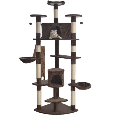 Casa luxuosa de pelúcia personalizada, grande condo de pelúcia de madeira de sisal natural arranhão de móveis árvore de gato